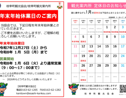 最新情報 NEWS 食べる 2026.01.13 炭火焼肉 異端児 お知らせ 2025.12.24 【観光案内所】2026年1月定休日/年末年始のお知らせ イベント 2025.12.03 東神楽オホーツク枝幸味覚祭り 開催します! お知らせ 2025.12.02 【観光案内所】2025年12月定休日のお知らせ お知らせ 2025.10.31 【観光案内所】2025年11月定休日のお知らせ 特集 PICKUP 絶景を求めて。 気持ちの良い風を感じながら、枝幸の絶景を見にお出かけしませんか?キャンプや観光に訪れたい、この時期におすすめのスポット、グルメ情報を集めました。 More テーマ別の"えさし" 見る・遊ぶ 枝幸の観光スポットや、こどもから大人まで楽しめるレジャースポットをご紹介。家族や友人、恋人と見て楽しい場所をCHECK! More 食べる どこか懐かしさを感じる枝幸グルメ!飲食店・スイーツ店などをご紹介。お気に入りの店を見つけてみよう! More 体験・学ぶ こどもから大人まで楽しめる体験施設や、学習イベントをご紹介。枝幸だから出来るアクティビティや、学校では教えてくれないことを学べるチャンス! More 買う 海の恵み・山の恵み。枝幸のお土産グルメやグッズをご紹介。もちろん、自分へのお土産にもおすすめですよ! More 泊まる オホーツク海をのぞむ海側と森林に囲まれた山側に一軒ずつある温泉ホテル。また、山側にあるコテージでもゆったりと「枝幸時間」を味わいませんか? More イベント 水揚げ量日本一を誇る「毛がに」を求めて全国から訪れる一大イベント「枝幸かにまつり」をはじめ、旬の味覚を楽しむイベントをご紹介! More みんなで投稿 More