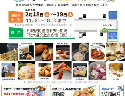 最新情報 NEWS お知らせ 2026.01.30 【観光案内所】2026年2月定休日のお知らせ イベント 2026.01.30 【開催決定】第3回 枝幸海明け毛がにまつり イベント 2026.01.22 オホーツク枝幸フェス2026inチカホ 食べる 2026.01.13 炭火焼肉 異端児 お知らせ 2025.12.24 【観光案内所】2026年1月定休日/年末年始のお知らせ 特集 PICKUP 絶景を求めて。 気持ちの良い風を感じながら、枝幸の絶景を見にお出かけしませんか?キャンプや観光に訪れたい、この時期におすすめのスポット、グルメ情報を集めました。 More テーマ別の"えさし" 見る・遊ぶ 枝幸の観光スポットや、こどもから大人まで楽しめるレジャースポットをご紹介。家族や友人、恋人と見て楽しい場所をCHECK! More 食べる どこか懐かしさを感じる枝幸グルメ!飲食店・スイーツ店などをご紹介。お気に入りの店を見つけてみよう! More 体験・学ぶ こどもから大人まで楽しめる体験施設や、学習イベントをご紹介。枝幸だから出来るアクティビティや、学校では教えてくれないことを学べるチャンス! More 買う 海の恵み・山の恵み。枝幸のお土産グルメやグッズをご紹介。もちろん、自分へのお土産にもおすすめですよ! More 泊まる オホーツク海をのぞむ海側と森林に囲まれた山側に一軒ずつある温泉ホテル。また、山側にあるコテージでもゆったりと「枝幸時間」を味わいませんか? More イベント 水揚げ量日本一を誇る「毛がに」を求めて全国から訪れる一大イベント「枝幸かにまつり」をはじめ、旬の味覚を楽しむイベントをご紹介! More みんなで投稿 More