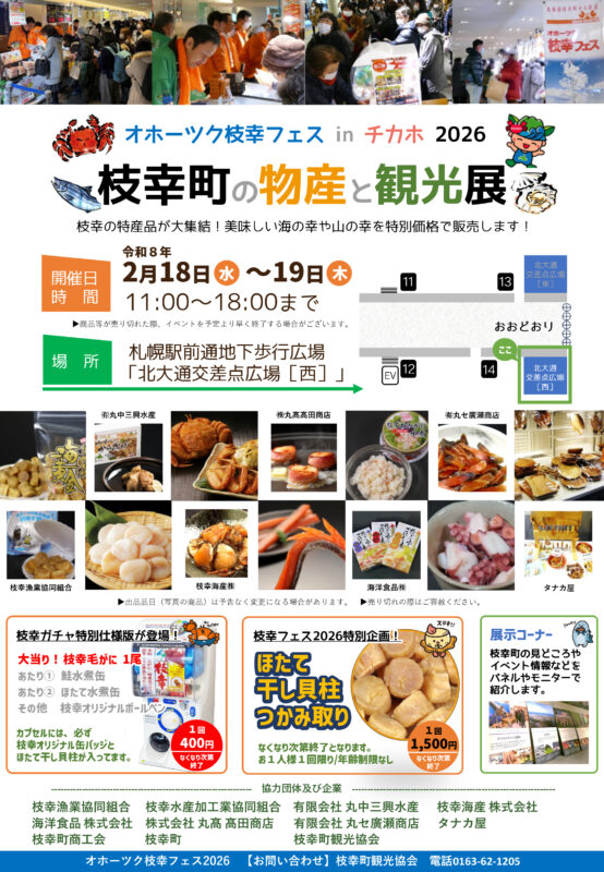 枝幸町の特産品が札幌で購入できる、大変お得なイベントです